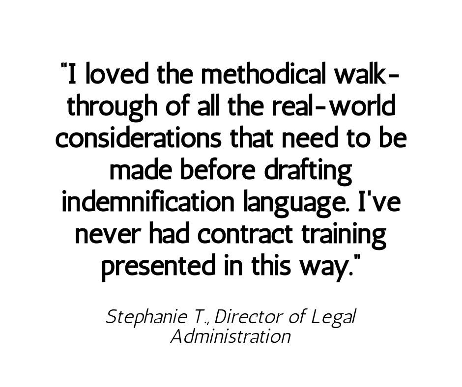 It's not you. Indemnification is the toughest contract provision to learn. There are so many layers, nuances, and landmines. This comprehensive training helps you develop your expertise across all aspects of these provisions. You'll learn strategic approaches, how to handle different claim types, and navigate your negotiations for this critical provision.